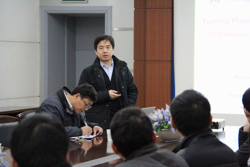 报告会上,熊教授向大家介绍了近期的两项研究成果,一项是微纳阵列的光学性能调控,主要包括金、银超材料的合成、调控及其可见-近红外光波段的响应;另一项是生物敏感器件的研究,通过共振频率的红移或蓝移以及表面增强拉曼信号来检测生物分子,如DNA分子、肿瘤标志物、食品污染物、重金属离子等。熊教授的报告引起了与会人员的浓厚兴趣,大家就各自感兴趣的问题与熊教授展开了热烈讨论。熊教授就部分研究内容和固体所研究人员达成合作意向。