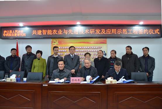 1月13日,中国科学院合肥物质科学研究院与庐江县政府、郭河现代农业示范园共建的“智能农业与先进技术研发及应用示范工程”签约仪式在庐江县县委举行。县政府、台创园管委会、中科院合肥研究院三方签订了《智能农业与先进技术研发及应用示范工程共建协议》。