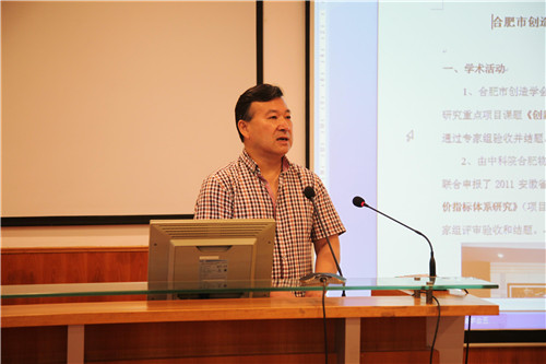 伍先达副理事长介绍安徽省创造学会筹备情况