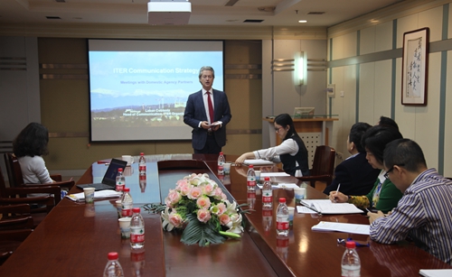 5月17日,ITER宣传部部长Laban Coblentz来等离子体所访问交流。等离子体所所长万宝年,综合办、聚变工程办负责人等参加交流会。