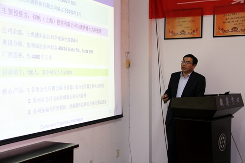 10月30日,上海康阔公司董事长、上海大学兼职教授黄勇博士到安徽光机所交流访问,并做了题为《光纤器件与光纤传感核心技术研究》的报告,激光中心20余位科研人员参加了报告会。