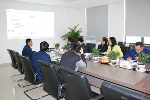 王厚亮一行首先参观了中科美络的公务车管理平台,了解公务车管理平台的运行情况。在随后的座谈会上,吴仲城从行业背景、目标市场、主要产品、应用规模、社会影响力等方面介绍了中科美络自2014年成立以来的发展情况。