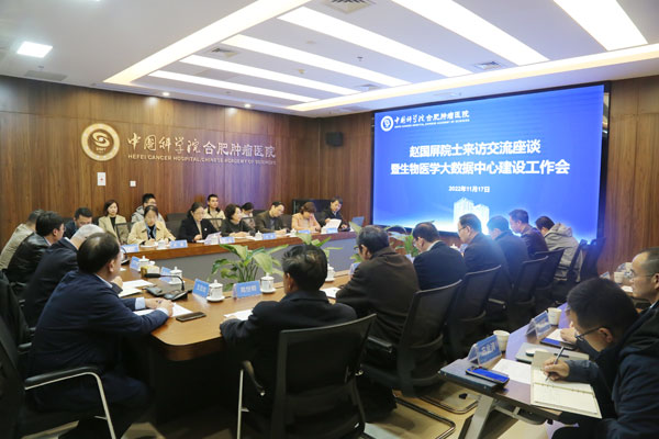 11月17日,中国科学院院士赵国屏到访中国科学院合肥肿瘤医院,指导医院生物医学大数据研究中心建设工作。
