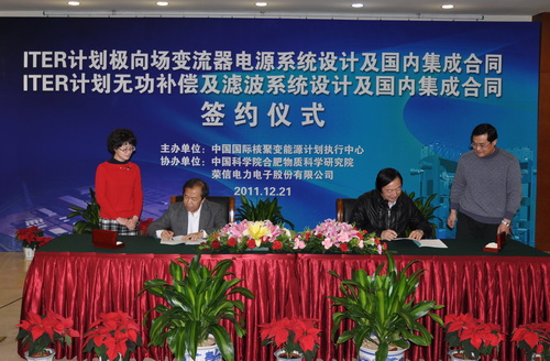 12月21日下午,合肥研究院等离子体所与中国国际核聚变能源计划执行中心(ITER中心)在北京科技会堂隆重签署了国际热核聚变实验堆(ITER)计划的一份大单——“ITER计划变流器电源系统采购包设计及国内集成合同”。这是我国参加ITER计划以来、乃至今后在整个ITER计划中的最大采购包合同。等离子体所所长李建刚和ITER中心副主任罗德隆分别代表双方在合同书上签字。签署仪式由ITER中心工程总监潘传红主持。