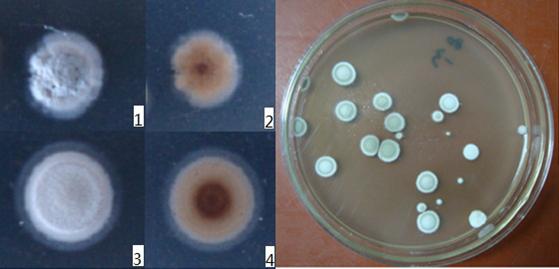右图为吸水链霉菌井冈变种诱变平板及单菌落形态