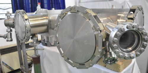 为保证主剥离膜在超高真空、机械、测量标定、控制等方面的高性能要求,针对异型截面真空盒的加工、复杂机构条件下超高真空获得、水平/垂直与旋转运动的精确控制,膜片高精度重复安装定位等技术难点,研制中心与高能物理研究所紧密合作,攻克了各技术难点,在严格的质量管理体系指导下,顺利实现了主剥离膜换膜过程的自动控制与精确定位,各运动部件之间配合良好,运转平稳,支撑稳固。