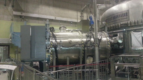 9月初,在等离子体所领导的鼎力支持及低温工程与技术研究室、托卡马克物理研究室等科研人员的大力配合下,首套中性束注入器在最短时间内达到实验条件。本次实验采用的工作气体为氘气。在历经一天一夜的起弧调试后,顺利进行了束引出实验,各子系统运行稳定,实验逐步进入稳定状态。9月9日,左右离子源分别成功获得束能量52千伏,束流22安培,束脉宽1秒(低导流系数模式)及束能量40千伏,束流25安培,束脉宽1秒的束引出束流(高导流系数模式)。