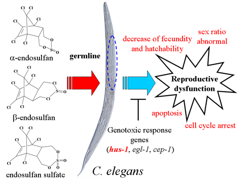 近期,技术生物所环境毒理与生态研究室博士研究生杜华和许安研究员在硫丹导致的生殖系统损伤研究方面取得重要进展。课题组通过研究发现,持久性有机污染物硫丹不仅可以直接引起秀丽线虫的遗传损伤,同时也会影响其的生殖系统,及其后代的生长发育;研究明确地证明,一定浓度的硫丹可以导致DNA损伤和线粒体功能异常,同时,硫丹的三种同系物在毒理学效应上也表现出程度上的不同。