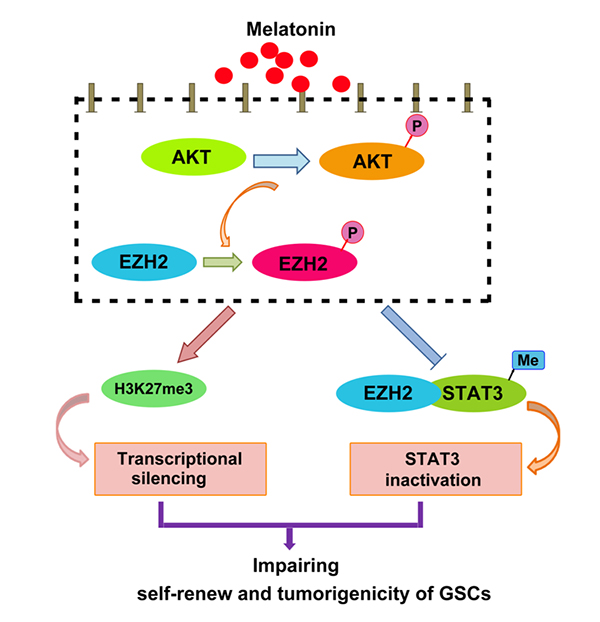 近期,医学物理与技术中心方志友研究员课题组在褪黑素介导的脑胶质瘤辅助治疗方面取得重要研究进展,相关结果以“Melatonin inhibits tumorigenicity of glioblastoma stem-like cells via the AKT-EZH2-STAT3 signaling axis”为题发表在内分泌学与代谢类期刊《Journal of Pineal Research》(doi: 10.1111/jpi.12341.)上。