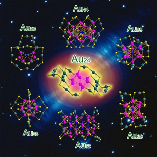 图2 不同金纳米团簇的结构框架比较(碳和氢原子省略) (Angew. Chem. Int. Ed. 2016, 55, 11567 -11571)。