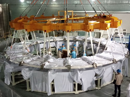 在绕制现场见证的欧盟F4E技术专家以及受欧盟特聘参与见证的美国强磁场中心专家Iain都对PF6 DP9的成功绕制高度赞赏。绕制完成的DP9双饼吊出绕制平台后将进行超导接头、出线头、绝缘VPI等后续制作工序。