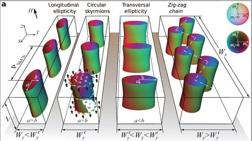 理论预期的磁斯格明子形貌随纳米条带宽度的变化关系