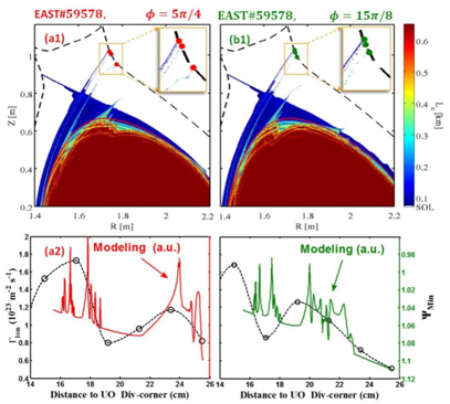 近日,等离子体所托卡马克物理研究室与德国尤利希研究中心、美国通用原子能公司等合作,在研究托卡马克偏滤器三维热与粒子沉积物理方面取得新进展。相关研究内容以Evidence and modeling of 3D divertor footprint induced by lower hybrid waves on EAST with tungsten divertor operations为题发表于Nuclear Fusion期刊[Nuclear Fusion 57, 126054 (2017)]。