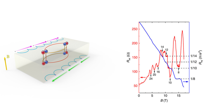 复旦大学修发贤教授课题组利用稳态强磁场实验装置在拓扑半金属砷化镉纳米片中探测到由表面态费米弧和体态手性能级构成的一种新型电子回旋轨道-外尔轨道,并首次发现其在强场下的量子霍尔效应。近日,相关研究成果以《狄拉克半金属砷化镉中外尔轨道的演变以及量子霍尔效应》(Evolution of Weyl orbit and quantum Hall effect in Dirac semimetal Cd3As2)在线发表于《自然通讯》上(Nature Communications)。