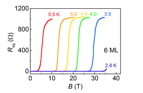 系统的低温强磁场实验表明,该体系的超导电性可存在于超过40特斯拉的平行强磁场中,这一数值远超过体系的泡利极限,是塞曼保护超导电性的直接证据。其中低温强磁场电输运实验得到了稳态强磁场实验装置(SHMFF)水冷磁体的支持,获得了重要的实验结果。