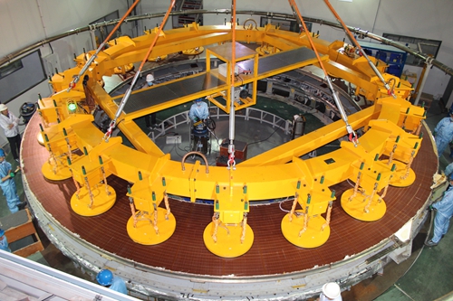 近日,随着熔安车间的一架75吨行车将第10个双饼(DP1)缓缓吊出并脱离平台模具,ITER PF6线圈的双饼批量生产已经圆满完成,标志着项目取得里程碑进展,目前已顺利进入线圈总装阶段。