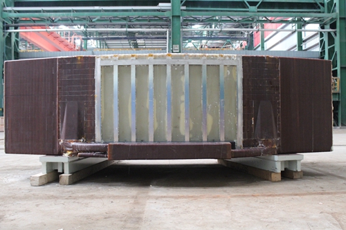 PF6线圈共有9个双饼叠放组成,叠放后绕组具有超大截面面积(1.5*1.2m,468匝),由于堆叠的连续性和真空浸渍工作的不可逆性,同时要保证线圈绝缘的充分浇注固化及高精度轮廓尺寸等要求,需要在线圈最终绝缘制造前进行全尺寸截面样件的制造技术认证(简称WPS认证)。经过6个月的努力,2018年9月,项目组顺利完成了WPS样件制造及测试工作,顺利通过IO组织的生产前评审MRR,为线圈总装生产扫清了最后一个障碍点。完成的WPS认证件外半径5米,内径3.5米,高1.2米,重近26吨,是目前国内完成截面最大的超导(Dummy)磁体绝缘浇注件。经各项性能检测,包括尺寸,绝缘质量,电学性能均满足ITER设计要求。