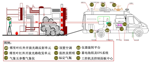 随着工业园区规模扩大、爆炸火灾泄露等突发大气污染事故频发,固定地面站点监测在定位排放源方面有所局限。为应对化工园区突发事故应急中,对复杂、动态变化环境条件下的污染物快速、精准识别的迫切需求,适应事故现场高温、高湿等恶劣环境条件下的使用要求,安光所FTIR课题组着手开发车载开放光路面源排放监测系统,以快速获取事故区域的污染物扩散趋势等情况。