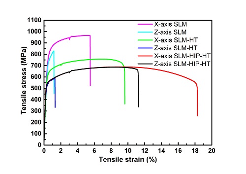 3D打印CLAM钢在不同方向拉伸性能及HIP与调质处理前后组织TEM图像