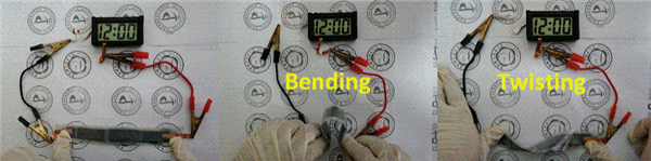 图3. MoS2/Ti3C2 MXene不同状态下驱动电子器件的实物图。