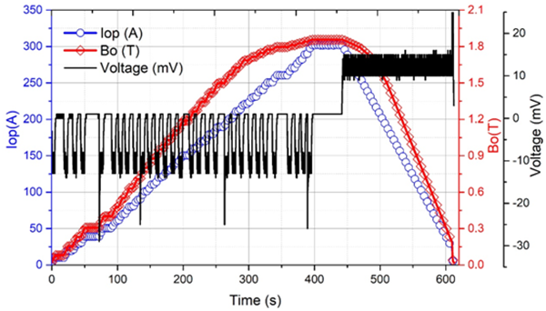 超临界氦强迫单向循环外冷却低温系统具有明显优势,可以保证冷却通道中没有氦气聚集的危险,并且运行温度的选择不受氦沸点的限制。在磁体失超时不会产生大量的氦气,避免了液氦浸泡超导磁体在旋转过程中导致线圈盒内部压力剧增产生的风险隐患,大幅提高了超导二极磁体的运行稳定性。项目团队在该磁体研制和测试中攻克了马鞍形绕制、超临界氦外冷却系统设计等关键技术,90度超导二极磁体在超临界氦外冷却方式下的成功励磁标志着此类超导二极磁体具备了下一步工程化应用的基础。