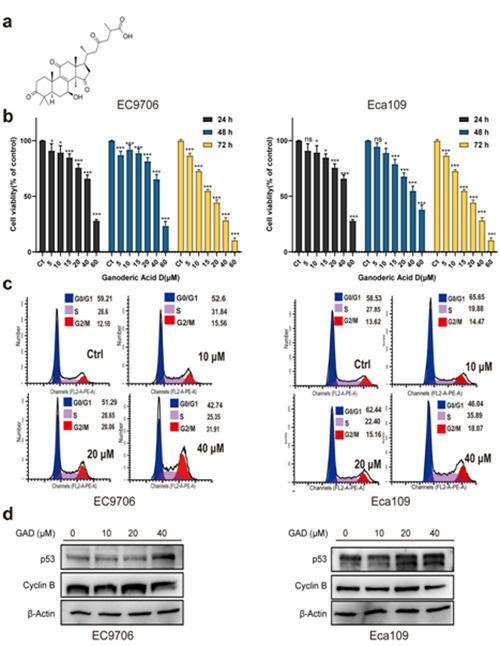 图1:灵芝对食管鳞癌细胞的细胞活力和细胞周期的影响