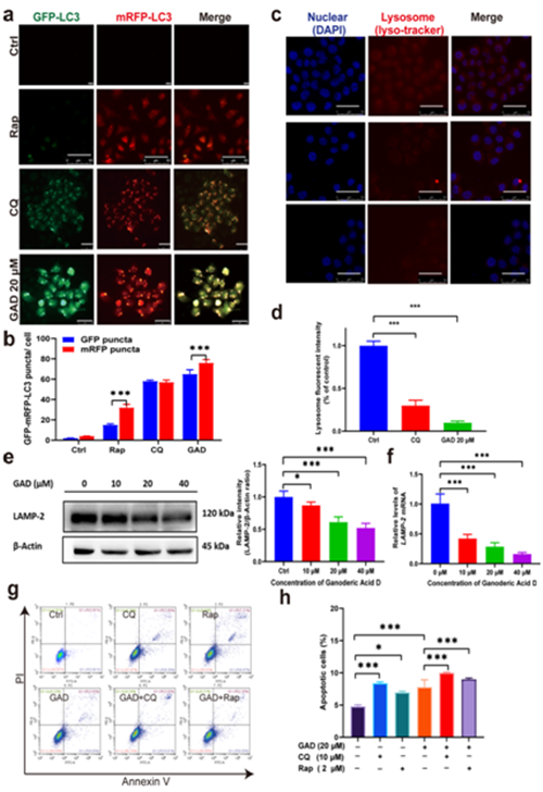 图4:灵芝酸通过影响溶酶体的功能导致自噬流阻断