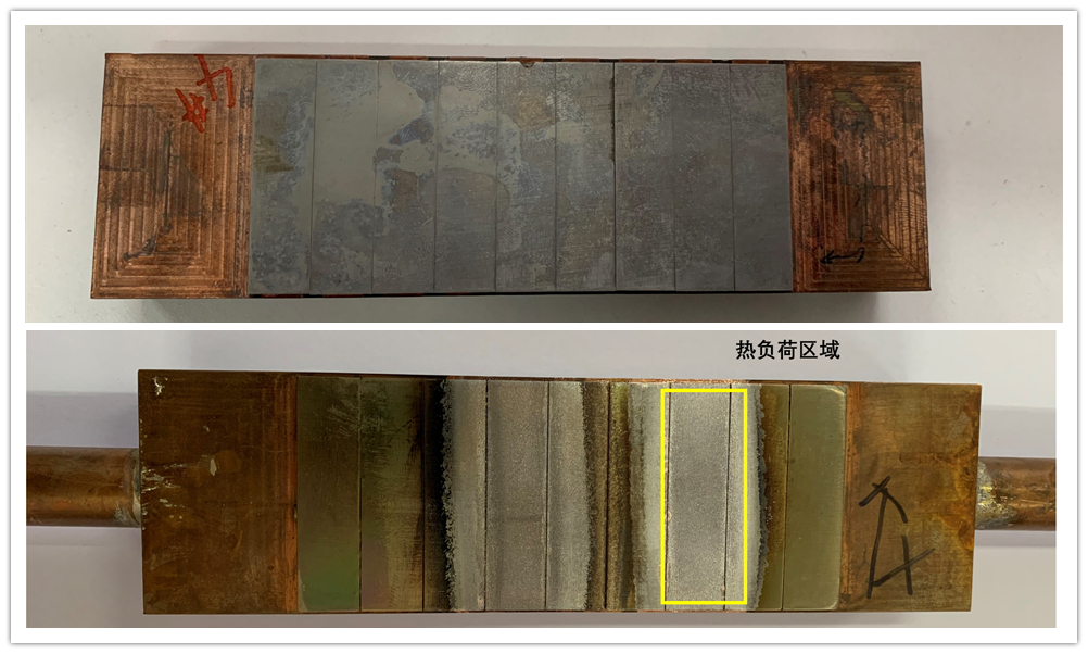 图1:1000次高热负荷实验前(上)和实验后(下)试件照片