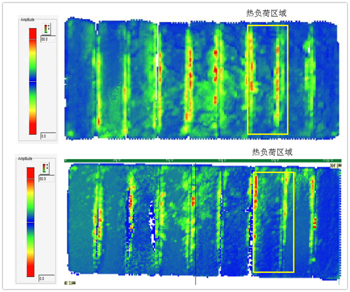 图3:样品测试之前和20MW/m2热流密度1000次循环后超声探伤云图对比