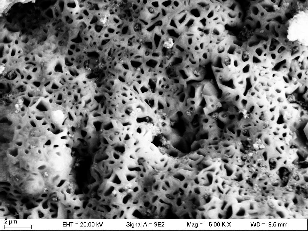 该工作研究了铁/马钢在氧控铅铋环境腐蚀后表面氧化膜的亚结构,发现:磁铁矿表面局部区域存在蜂窝状组织,该组织由贫氧孔洞和网状枝干组成(图1)。低的氧浓度可以促进蜂窝状组织在更短的时间和更多的区域形成。随着腐蚀时间的增加,孔洞尺寸增大、贫氧区和贫铁区面积均增大。经2000h腐蚀,贫氧区延伸至孔洞下方的磁铁矿层和尖晶石层,导致上述层存在大量氧空位(图2),将诱发点蚀的形成,并促进点蚀坑的长大。分析认为蜂窝状组织的形成可能是因为磁铁矿表面高能量的局部区域在氧浓度变得较低后发生溶解。该研究进展表明,铁/马钢表面氧化层中蜂窝状组织的存在意味着所在区域铅铋溶解氧浓度较低,可能诱发点蚀。为避免蜂窝状组织的形成,有必要优化氧控系统的设计。该研究工作为小型铅冷快堆的设计提供了重要参考。