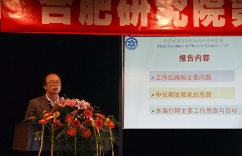 研究院院长王英俭代表第三届领导班子做任期目标报告。报告对过去四年工作进行了回顾,剖析了存在的主要问题。提出的第三届领导班子任期目标主要有:研究制定“十二五”发展规划,进一步明确战略定位、核心使命和战略目标;加强科技创新和实验室平台建设,取得一批高水平研究成果,进一步扩大影响;加强人才培养和引进,着力打造结构合理的科技队伍;积极推进成果转移转化和院地合作,为社会进步和经济发展作出贡献;继续改进完善管理体制,确保持续有效运行;不断改善职工待遇;继续加强园区和创新文化建设,创造一流的园区环境和良好的人文环境;继续加强国际合作与交流八大方面的内容。