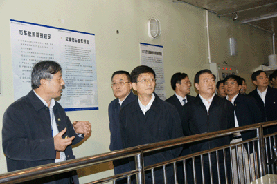 合肥研究院党委书记、副院长匡光力、等离子体所党委书记张晓东代表科技人员热情地欢迎孟建柱国务委员一行的到来并带领大家参观了EAST装置实验大厅。张晓东研究员向领导和来宾们详细介绍了EAST装置的工作原理、意义和作用;在参观过程中,匡光力研究员汇报了EAST建设中取得的几十项自主创新技术和装置运行后取得的一系列令世界瞩目的科学实验成果并展示了现场陈列的超导产品和设备,他自豪地告诉孟建柱国务委员,EAST为我国参与国际热核聚变实验堆(ITER)计划奠定了重要物理和技术基础,中国在和平利用聚变能方面走在了世界前列。孟建柱国务委员听后非常高兴的说,你们很了不起啊,谢谢大家!