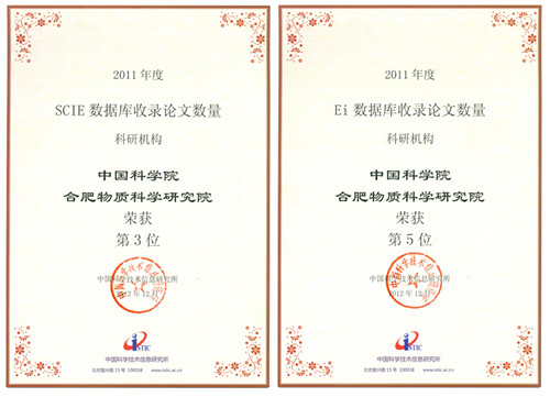 中国科学技术信息研究所12月7日发布的中国科技论文统计结果显示,2011年合肥研究院的SCIE(科学引文索引扩展版)论文收录量在全国科研机构中排名第3,工程索引核心部分(EI)论文收录量位列第5。另,等离子体所任雪梅博士的论文入选为中国百篇最具国际影响学术论文。
