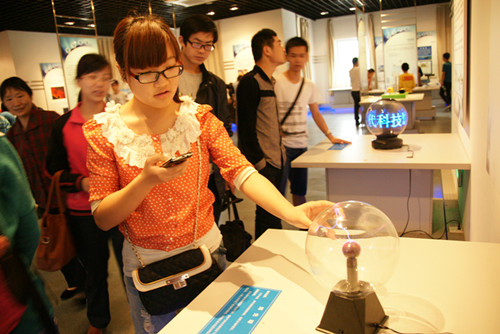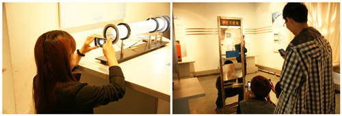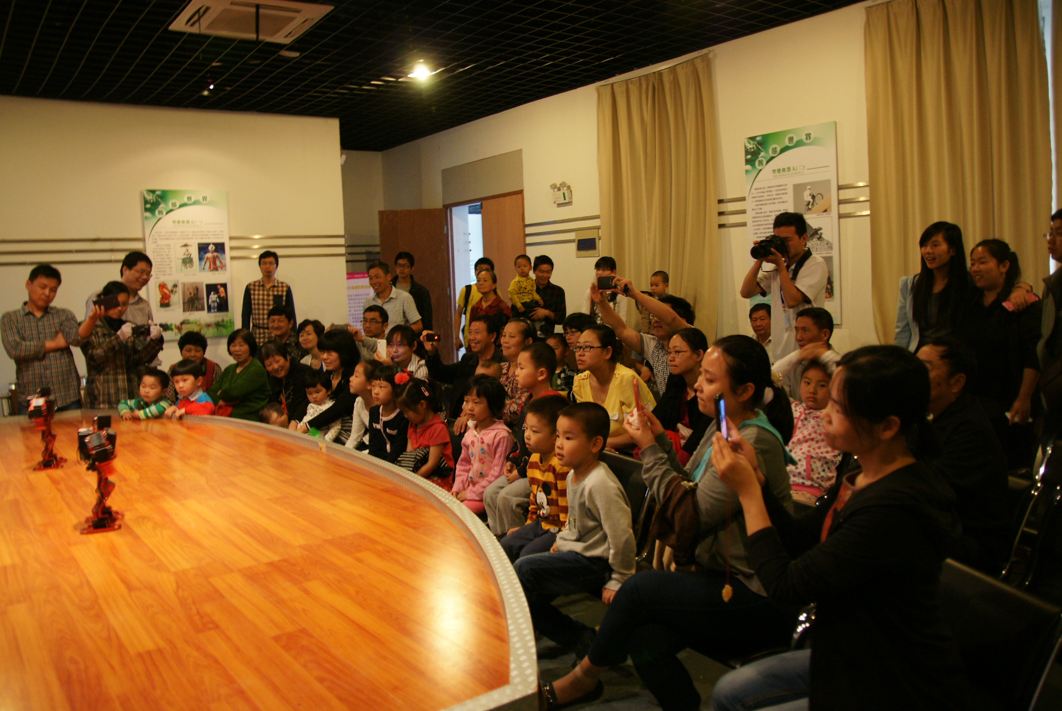合肥现代科技馆是研究院科技周活动中公众参观最为集中的地方,五大展厅、机器人表演、磁悬浮列车演示、月球探险等依旧是社会大众的“最爱”。与往年不同的是,今年的现代科技馆又多了新节目:中科大的显微科学摄影比赛优秀作品在此展出,让公众看到科技之美;研究院9个科研单元齐力奉献的12个科普专题报告、视频,如《“嗅”出疾病》、《晶体与现代科技》、《眼见不一定为实》、《自然界的动物导航》、《物联网》等让公众听出科技之趣;等离子体所提供的“液氮的妙用”展示、安光所提供的“无创测血糖”,让公众试到科技之妙;智能所运动与健康信息技术研究中心设立的“运动与健康生活”展既带给公众关于运动调节和生活健康方面的知识,又用图文展示了该中心自主研发的系列人体生理与健康检测仪器……