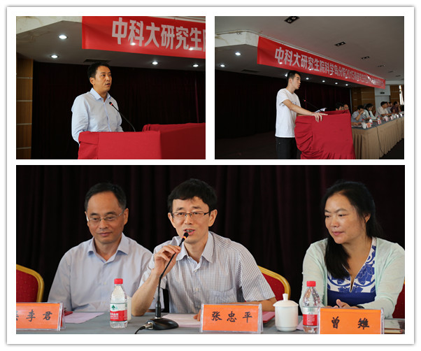 优秀导师代表张忠平,优秀毕业生代表王奇,新生代表范若愚分别发言