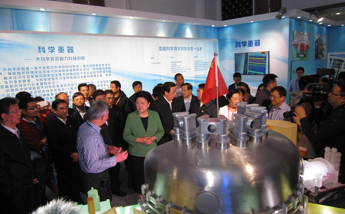 等离子体所党委书记张晓东在展台前也向刘延东、郭金龙、万钢、白春礼等领导汇报了EAST取得的主要进展和等离子体所聚变研究概况。