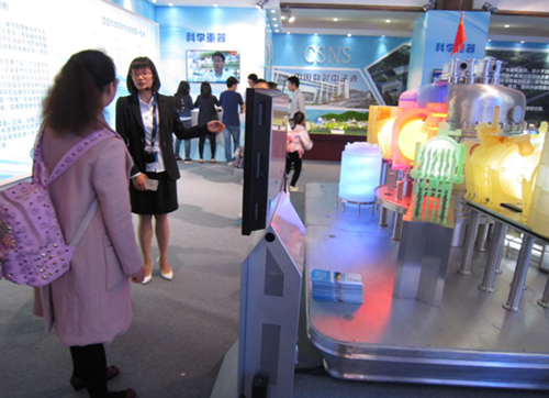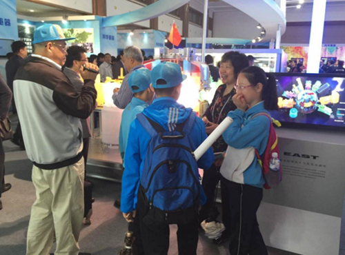 EAST光电模型受到了参加活动的各级领导、嘉宾,社会公众的欢迎和关注,核聚变研究引起大家的兴趣。所党委书记张晓东和综合办主任何友珍作为EAST光电模型参展方代表,向前来我展台参观了解的来宾深入浅出地介绍了核聚变、聚变能、EAST装置和等离子体所聚变研究成果。