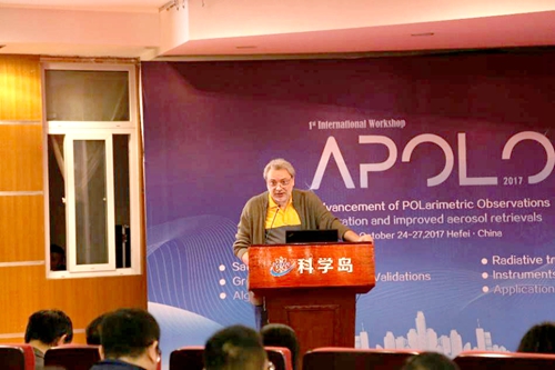 10月23至26日,国际卫星偏振观测系列研讨会的首次会议——第一届偏振观测进展国际研讨会(APOLO2017)在合肥科学岛召开。来自中国、美国、德国、法国、日本、俄罗斯、印度、阿根廷、乌克兰等14个国家的200多位(含50余位国际学者)学者和专家参加了会议。会议旨在促进国际偏振遥感观测和反演技术的全面交流,进一步推动业内深入合作。