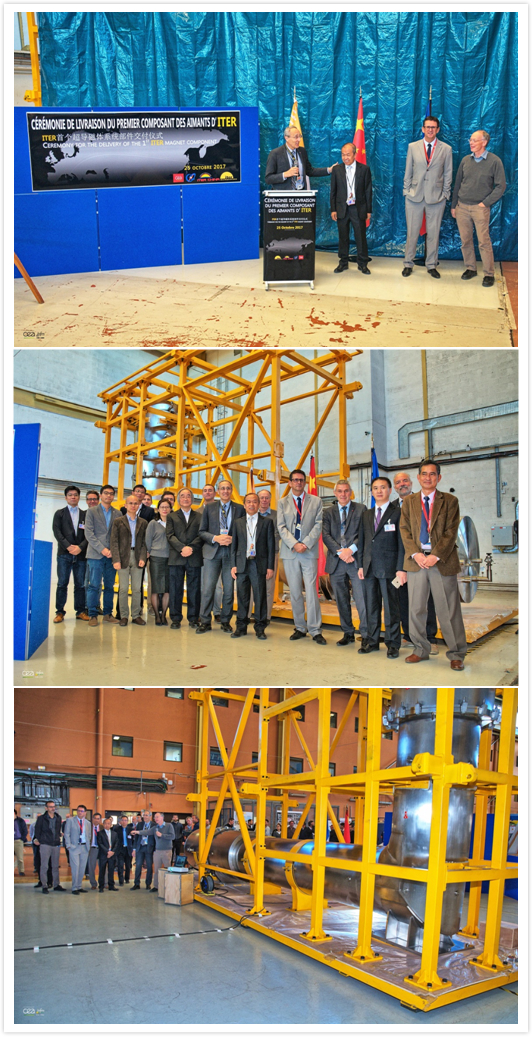 10月25日,由等离子体所承担研制的ITER计划首个超导磁体系统部件——馈线(FEEDER)采购包PF4过渡馈线顺利运抵法国卡达拉舍,其交付仪式在法国原子能委员会举行。该部件将在ITER磁体基础设施设备上进行测试后进行安装。