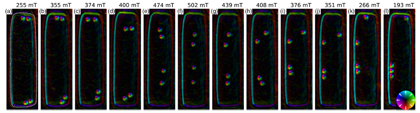 在纯二维条件下,理论计算及实验均表明磁斯格明子之间只存在排斥的相互作用。在一定厚度的薄膜材料或纳米结构材料中,理论计算表明磁斯格明子在沿薄膜厚度方向会形成调制的磁结构,这些三维磁斯格明子之间可能也存在吸引的相互作用,但是一直缺乏实验证据。