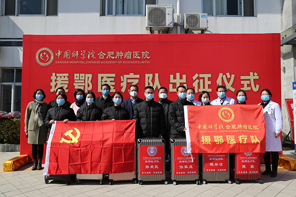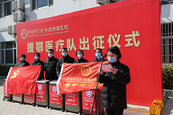 中科院合肥研究院院长刘建国、党委书记黄晨光,医学物理中心党委书记、中科院合肥肿瘤医院院长王宏志,党委副书记储焰南,以及医院领导班子成员参加了出征仪式。安徽省卫健委副主任杜昌智赴机场为医疗队送行。