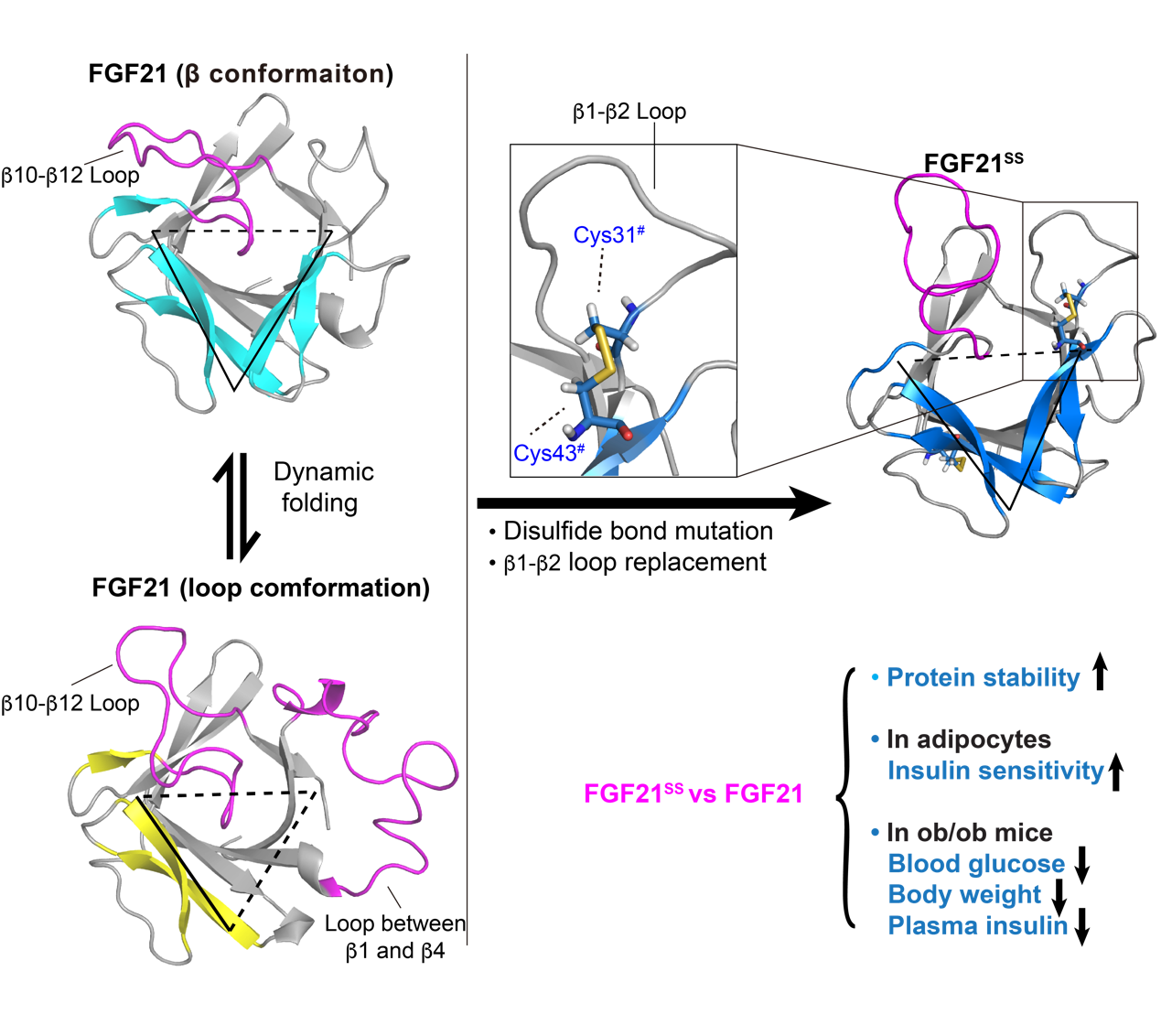 FGF21结构动态性以及FGF21SS蛋白质工程改造示意图