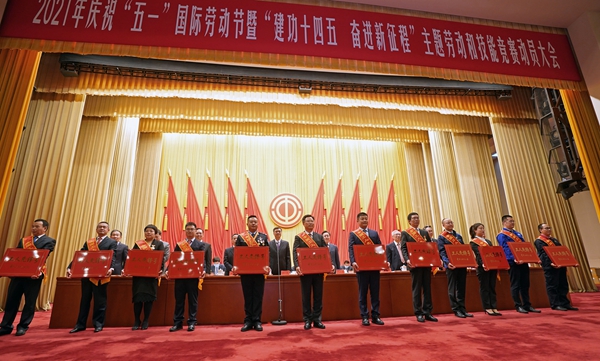 4月27日,2021年庆祝“五一”国际劳动节暨“建功十四五 奋进新征程”主题劳动和技能竞赛动员大会在北京人民大会堂隆重举行。会上,中科院合肥研究院强磁场中心稳态强磁场装置研制团队被授予“全国工人先锋号”称号。