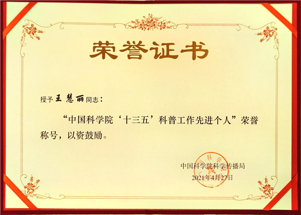 4月26日至28日,中国科学院科普工作培训暨表彰会在上海举办。中科院合肥研究院被授予“国家科研科普基地”称号。合肥现代科技馆王慧丽同志荣获中科院 “十三五”科普工作“先进个人”。