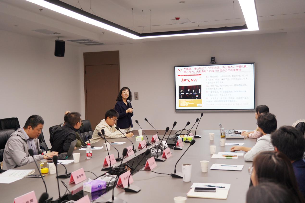 滕雪梅带领大家学习了习近平总书记关于办公厅(室)工作的系列重要论述,以及侯建国院长对我院办公室工作的要求,并分享了对做好新时代办公室工作的思考。她指出,合肥物质院办公室系统存在特定的工作特点和挑战,作为承上启下、协调左右的中枢机构,各综合管理部门要进一步强化政治意识、服务意识、效能意识、勤廉意识,做到旗帜鲜明地的讲政治、勇于担当抓落实、转变作风提效能、坚持廉洁自律筑防线。