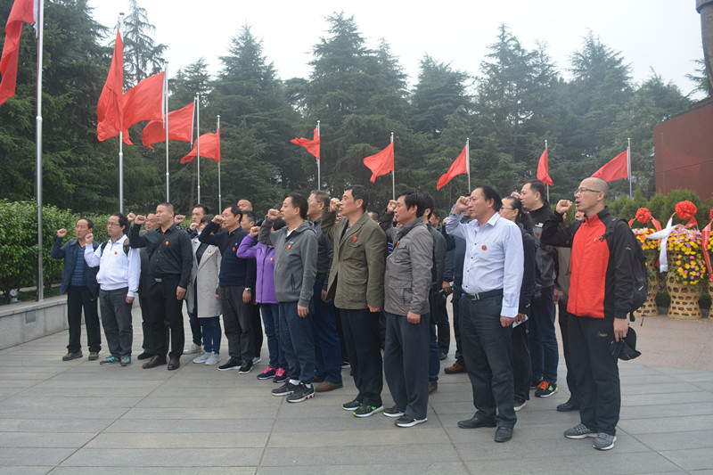 迎着秋日的阳光,32名党员首先来到位于韶山的毛泽东铜像广场,怀着无比崇敬瞻仰之情向毛泽东铜像鞠躬并敬献花篮,以传统而又庄重的方式纪念这位新中国的缔造者。面朝鲜红的党旗,党员们庄严肃立,重温入党誓词,宣誓作为一名共产党员的责任和义务。重温誓词不仅仅是对党的承诺,更是对自己的激励和鞭笞。随后,党员们来到花明楼刘少奇铜像广场、纪念馆,对这位伟大的无产阶级革命家用一生去诠释“实事求是”的工作作风,致以深深的敬意。