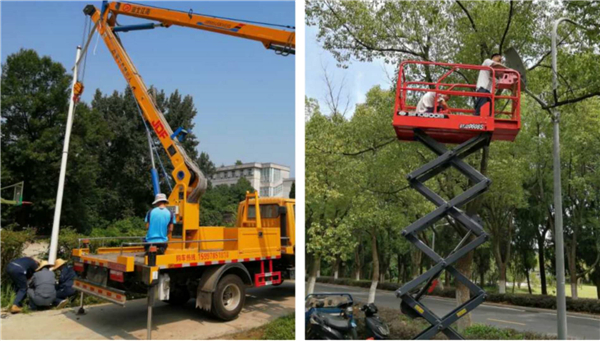 供电所不畏酷暑全面巡检科教融合研究生公寓和中岛路路灯