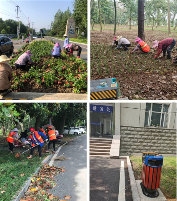 绿化环卫不停歇:闷热的夏天,蚊虫肆虐,绿化环卫人员不畏酷暑、不怕蚊虫叮咬,认真做好灌木修剪、草坪补种、绿化养护、园区卫生保洁等各项工作,用自己勤劳的双手勾勒出整洁、美丽的园区环境。