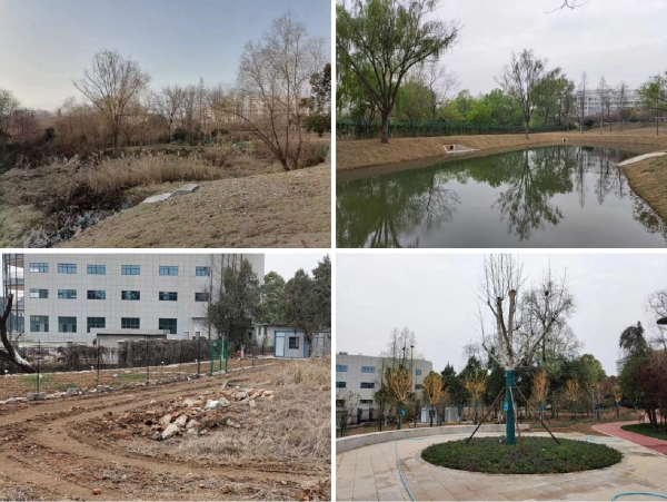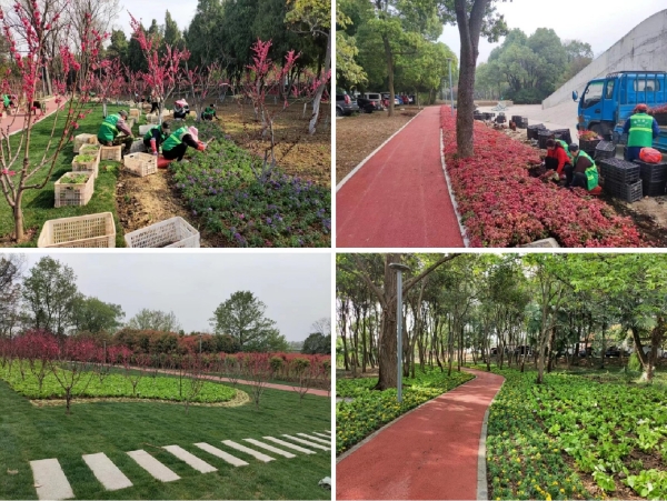 服务中心首先对原有杂乱的密林进行了全面清理、亮化,稳步落实土方回填、土壤改良、树木移栽、籽播花卉等工作。其次,栽植了花季不同的碧桃林、樱花林及各类草花组景,实现“四季有花、四时有景”的目标。针对步道途经的档案馆区域,服务中心还重点开展了对西侧池塘进行清淤、岸坡平整、水生植物栽植等各项工作。改造后,环湖步道周边乔木、花灌木错落有致,植物空间上的林缘线和林冠线更加自然,整体效果更美观,视野更通透。