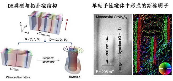 电子全息技术揭示单轴手性磁体Cr1/3NbS2中发现的磁斯格明子(右)